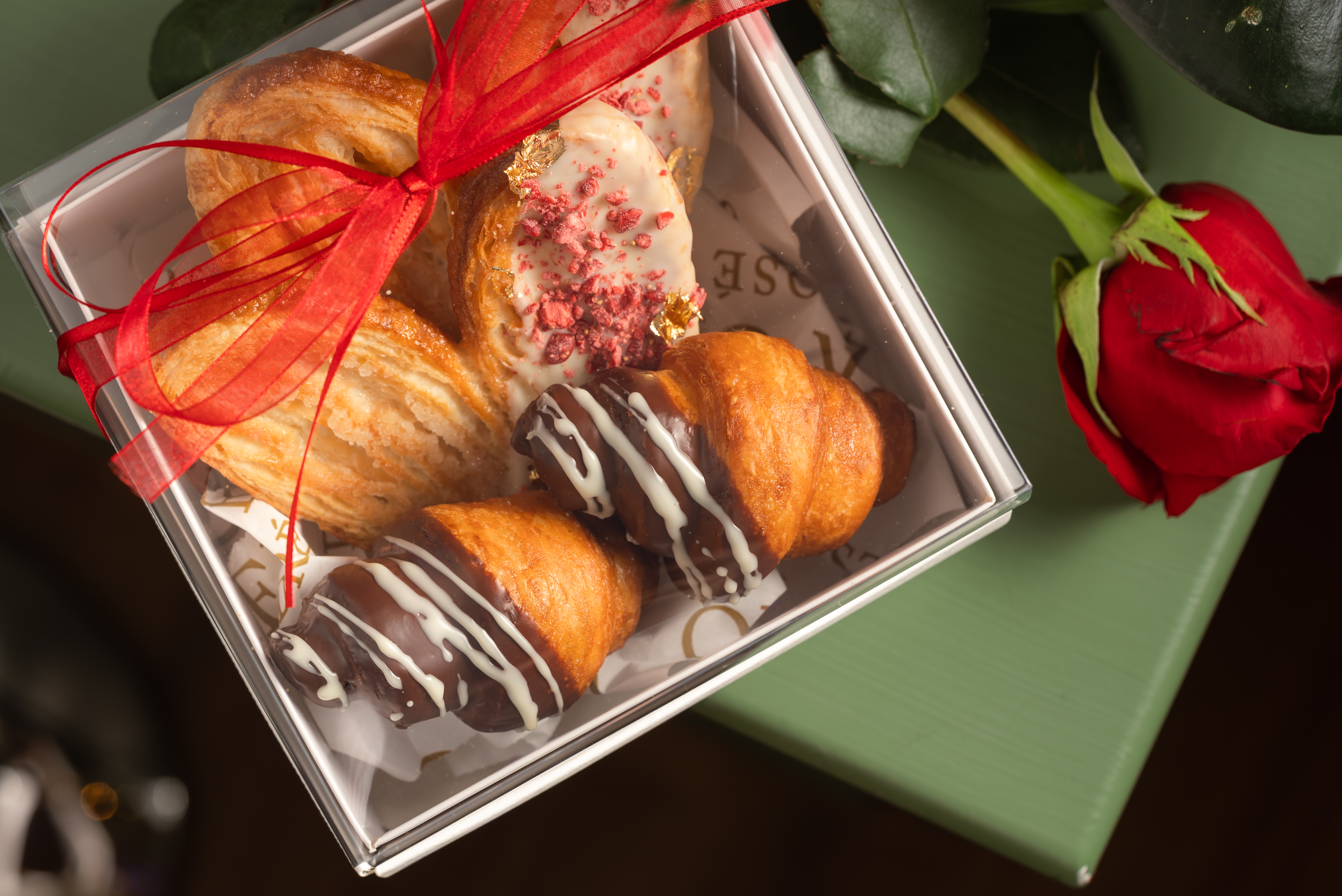 Inside, you’ll find four Valentine’s Day–themed pastries, including our indulgent chocolate-dipped strawberry ganache xuxos and sweet, flaky palmeras, crafted fresh with the same care and creativity that define Bar Centro’s unique pastry program. Each bite is rich, buttery, and irresistibly festive, making this gift box an ideal choice for Valentine’s Day desserts, romantic treats, or a unique pastry gift in Las Vegas.